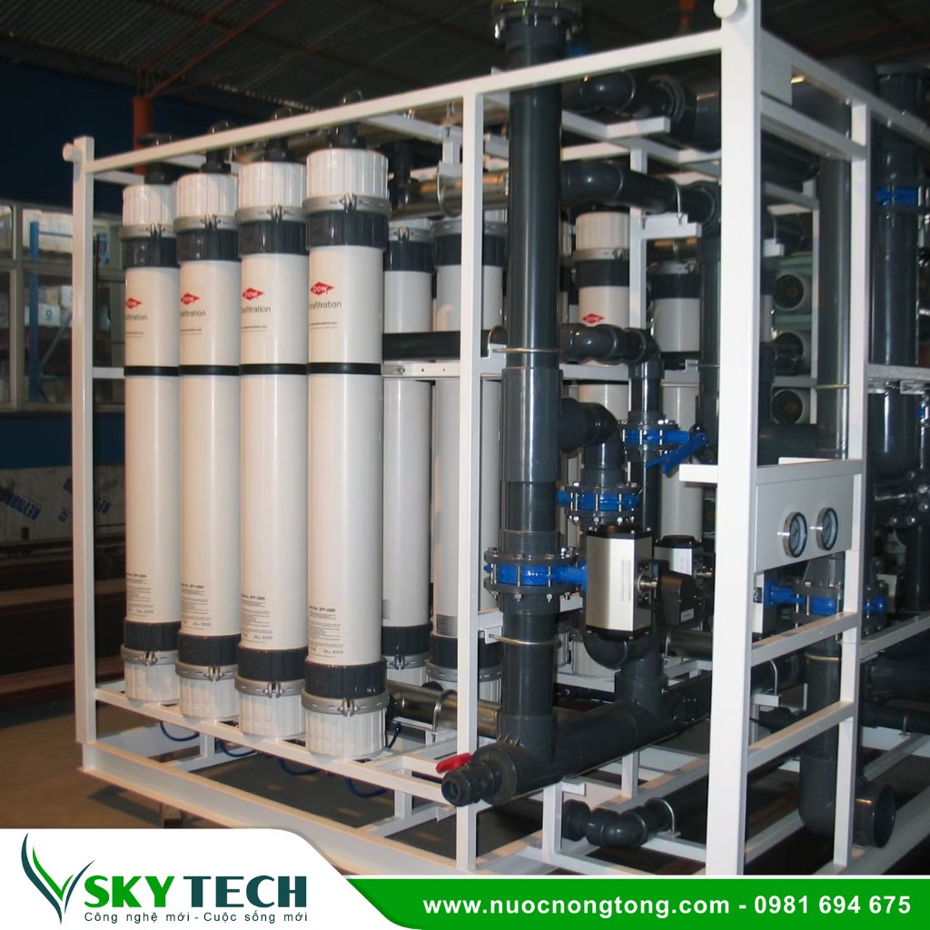 - Công nghệ siêu lọc UF sử dụng nguyên lý tách màng để loại bỏ các hạt và chất cặn trong nước.